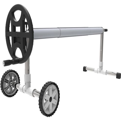Enrouleur de couverture solaire mobile - petit modèle avec roue de déplacement - Longueur de 4.90 x 6.45 m - Ø des tubes 76 / 81 mm - 3 tubes de 2.44 m.