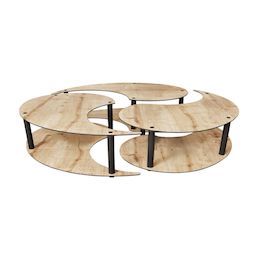 Ensemble de table basse en bois Yin Donnez du caractère à votre décoration avec ce ensemble de table basse pensé pour allier style et praticité. Son design soigné et ses finitions élégantes s'intègrent facilement dans une ambiance moderne, naturelle ou plus altique.Points fortsLook tendance pour sublimer votre intérieurFormat adapté aux espaces du quotidienIdéal pour le salon, la chambre ou l'entréeCaractéristiquesMatière : boisDimensions : 70 x 70 x 38 cmColoris : ChêneDétails complémentaires2.0Astuce déco : associez-le à des matières naturelles (bois, textile, métal) pour un rendu harmonieux et chaleureux. Un choix parfait pour apporter une touche élégante sans surcharger la pièce.Ensemble de 3 tables basses modernes, couleur chêne, diamètre 70 cm x hauteur 38 cm, 100 % MDF avec pieds en kraft compressé. Design élégant et fonctionnel pour salons et espaces contemporains. .nombre d'etagere: 2