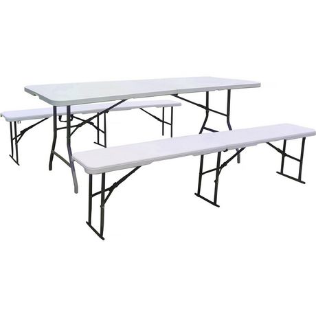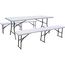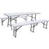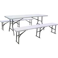 Ensemble Table de jardin pliante + 2 Bancs pliants Foldy - Dimensions table : 180 cm x 74 cm x 74 cm - Dimensions banc : 183 x 28 cm - Blanc.