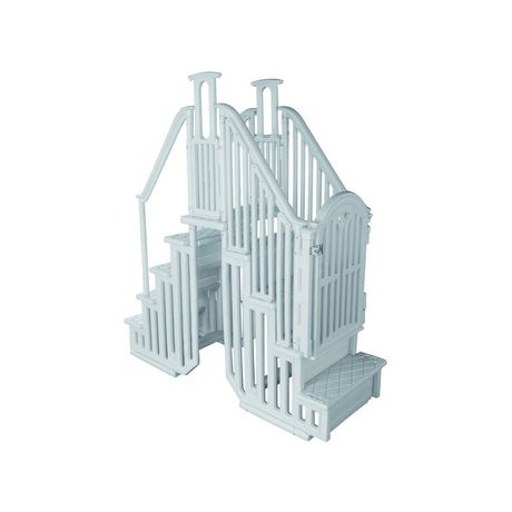 Escalier double en résine pour piscine facile d'installation et d'utilisation - Taille ajustable de 122 à 137 cm - Porte de sécurité intégrée - Poids maximum supporté 200 kg - Largeur des marches 61 cm..Descriptif : Escalier double pour piscine. Ajustable de 122 à 137 cm de hauteur, convient donc au