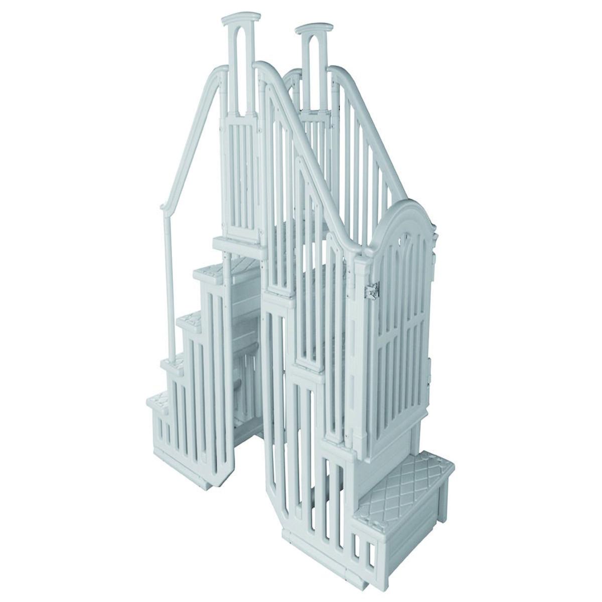 Escalier double en résine pour piscine facile d'installation et d'utilisation - Taille ajustable de 122 à 137 cm - Porte de sécurité intégrée - Poids maximum supporté 200 kg - Largeur des marches 61 cm..Escalier double en résine pour piscine facile d'installation et d'utilisation - Taille ajustable