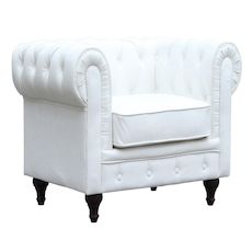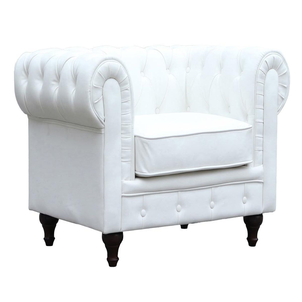 Fauteuil Aliza Chesterfield - Blanc - Dimensions : 111 x 82 x 70 cm - Revêtement en PU capitonné - Design British - Pieds en bois.Fauteuil Aliza Craquez pour le charme de ce fauteuil de type chesterfield Aliza .Ce fauteuil design propose un style très sobre et est particulièrement confortable. L
