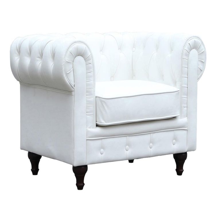 Fauteuil Chesterfield Aliza - 111 x 82 x 70 cm - Blanc