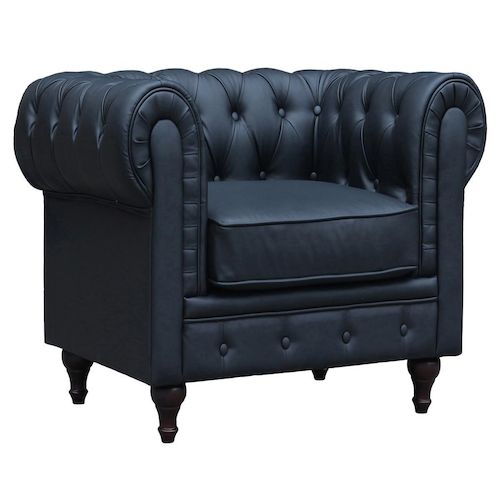 Fauteuil Chesterfield Aliza - 111 x 82 x 70 cm - Noir