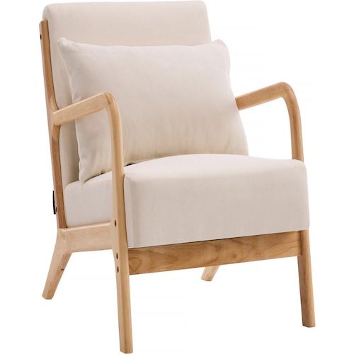 Fauteuil Clinton en bois style scandinave - Lin - Beige