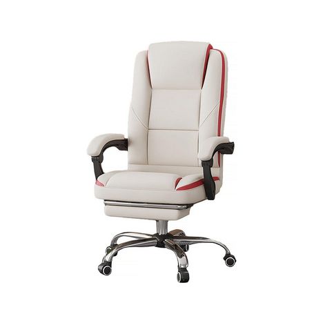 Fauteuil président avec repose pieds en simili Maissa - 59 x 62 x 107/115 cm - Hauteur de l'assise ajustable - Siège et dossier rembourrés - Poids maximum supporté : 180 kg - Beige.Fauteuil de bureau Maissa -Beige/Rouge: Découvrezl'éléganceet leconfort ultimeavec notre chaise de bureau moderne,