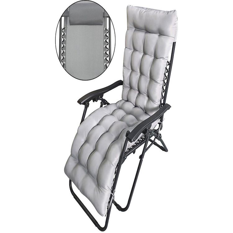 Fauteuil de jardin relax zéro gravité avec coussin matelassé Sintra - Gris