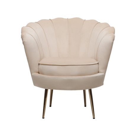 Fauteuil arrondi au design de coquillage Floria -70 x 73 x 76 cm - Beige - Epaisseur du coussin : 9 cm - Hauteur d'assise : 44 cm - 10,6 kg.Fauteuil en velours Floria -70 x 73 x 76 cm Découvrez le fauteuil Floria , une pièce exceptionnelle qui s'adapte à tous vos espaces intérieurs, que ce soit
