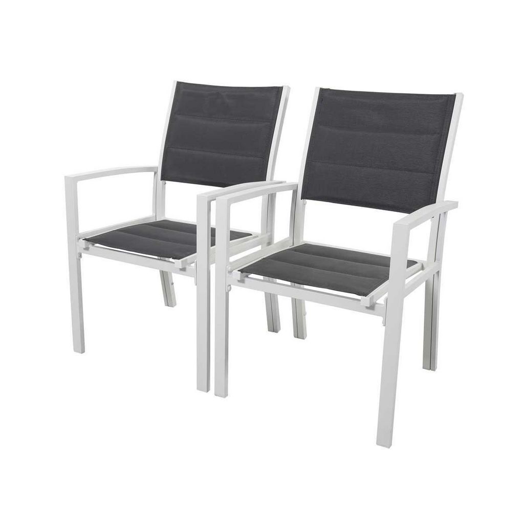 Lot de 2 fauteuils de jardin Brazil/Canaries - Un confort optimal - Coloris structure : Blanc - Coloris textilène : Gris foncé - Non empilables.Lot de 2 fauteuils de jardin Brazil/Canaries Ce fauteuil de jardin est fabriqué en aluminium de qualité supérieure et est recouvert detextilènerésistan