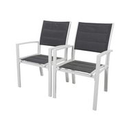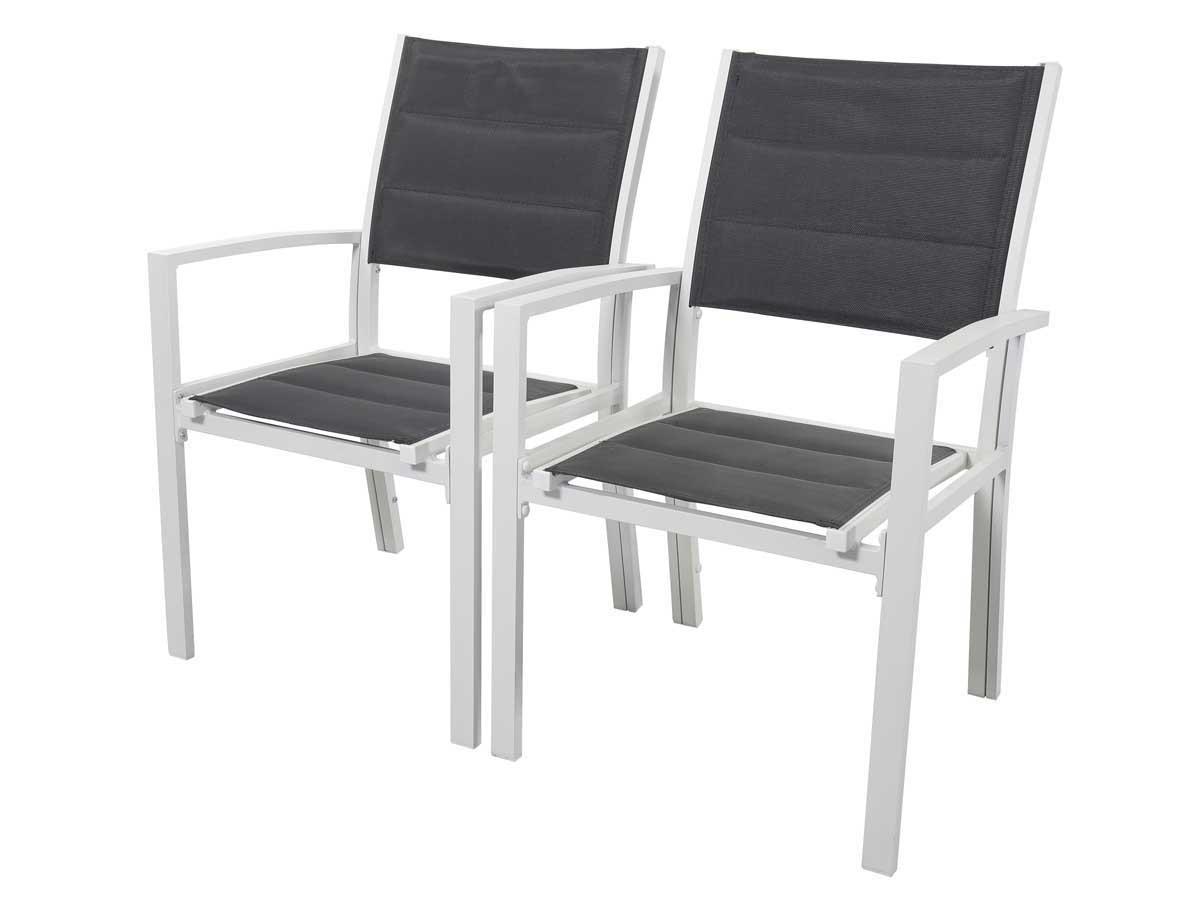Lot de 2 fauteuils de jardin Brazil/Canaries - Un confort optimal - Coloris structure : Blanc - Coloris textilène : Gris foncé - Non empilables.