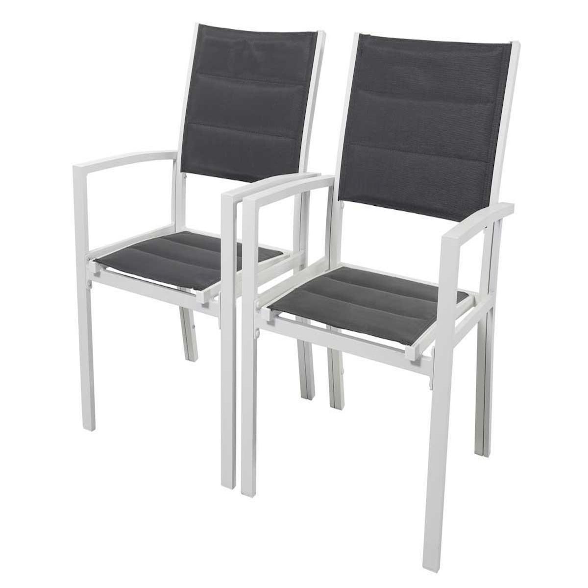 Lot de 2 fauteuils de jardin Brazil/Canaries - Un confort optimal - Coloris structure : Blanc - Coloris textilène : Gris foncé - Non empilables.Lot de 2 fauteuils de jardin Brazil/Canaries Ce fauteuil de jardin est fabriqué en aluminium de qualité supérieure et est recouvert de textilène résista