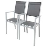 Lot de 2 fauteuils de jardin Tropic Lot de 2 fauteuils de jardin - Un style aux formes élégantes - Structure solide et légère - Compatibilité idéale avec nos tables de jardin Tropic.Vous aimerez les fauteuils phoenix pour leur robustesse et leur élégance joint à une touche de modernité.Disponibles en différents coloris, ils vous donneront la possibilité de personnaliser votre jardin en fonctions de vos goûts et de vos envies.Afin de conserver vos fauteuils le plus longtemps possible, ces derniers ont été traités anti-UV, antirouille et résistant à l'eau.Par ailleurs, nous vous conseillons de les protéger à l'aide d'une housse de protection. Lot de 2 fauteuils de jardin Tropic - Un confort idéal - 57.5 x 62 x 90 cm - Coloris structure : Argent - Coloris textilène : Gris foncé - Non empilables .Descriptif: Lot de 2 fauteuils de jardin - Un style simple et intemporel - Structure solide et légère - Compatibilité idéale avec nos tables de jardin Tropic - Sensible aux UV