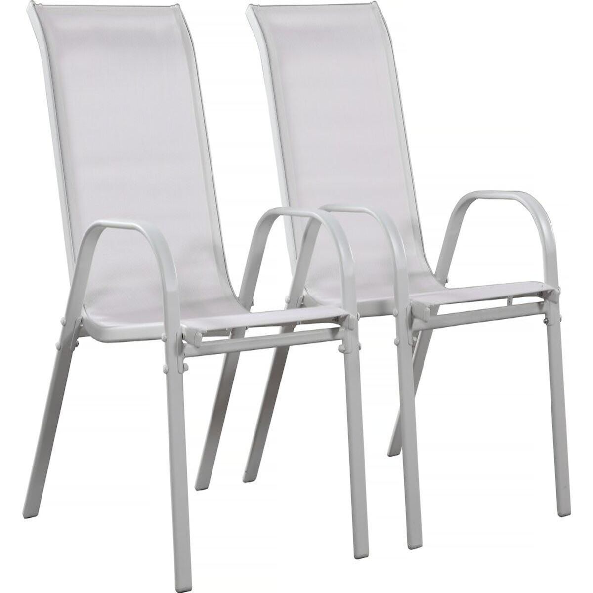 Lot de 2 fauteuils de jardin - Acier/Textilène - 53.5 x 75 x 92 cm - Design simple et moderne - Empilables - Hauteur d'assise : 40 cm - Entretien simple.