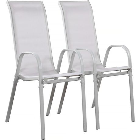 Lot de 2 fauteuils de jardin - Acier/Textilène - 53.5 x 75 x 92 cm - Design simple et moderne - Empilables - Hauteur d'assise : 40 cm - Entretien simple.Lot de 2 fauteuils de jardin CORDOBA Lot de 2 fauteuils de jardin - Un style aux formes élégantes - Structure solide et légère - Compatibilité idé