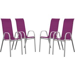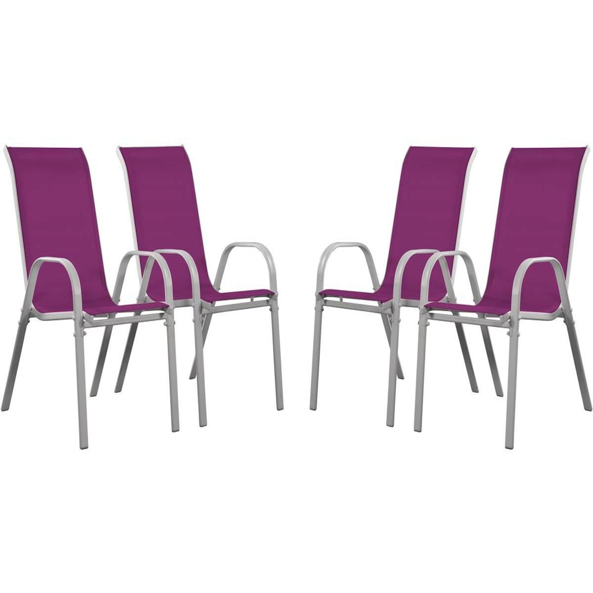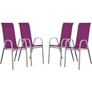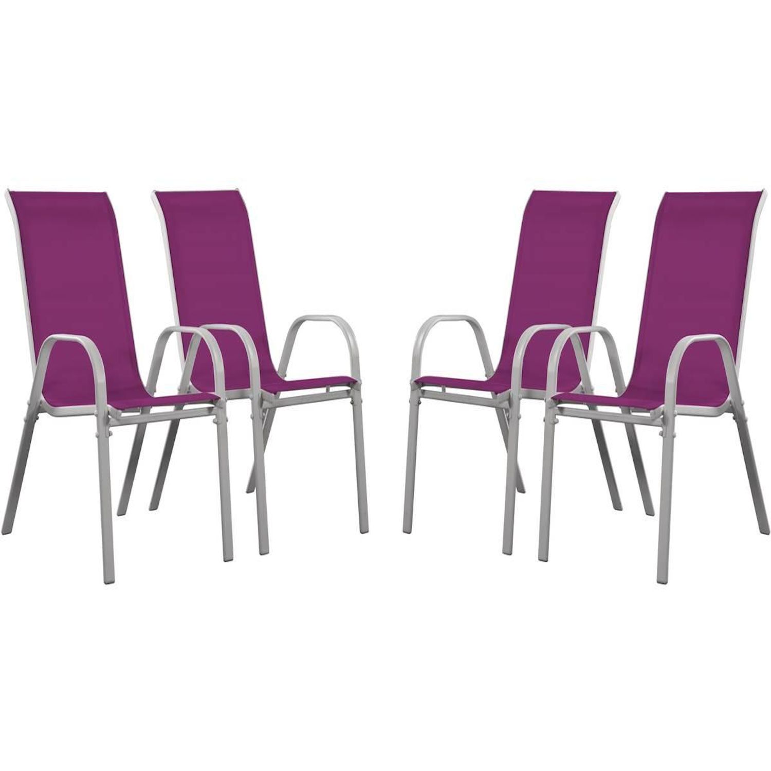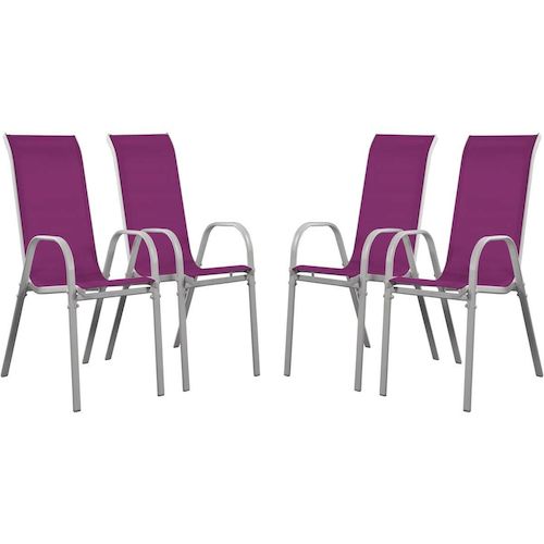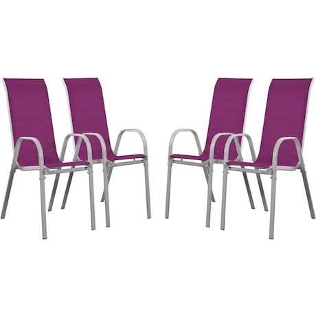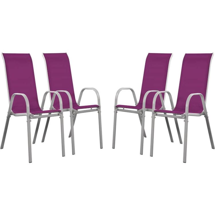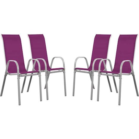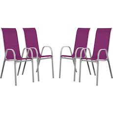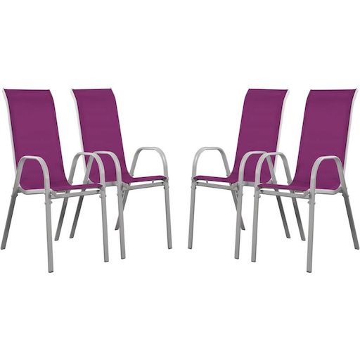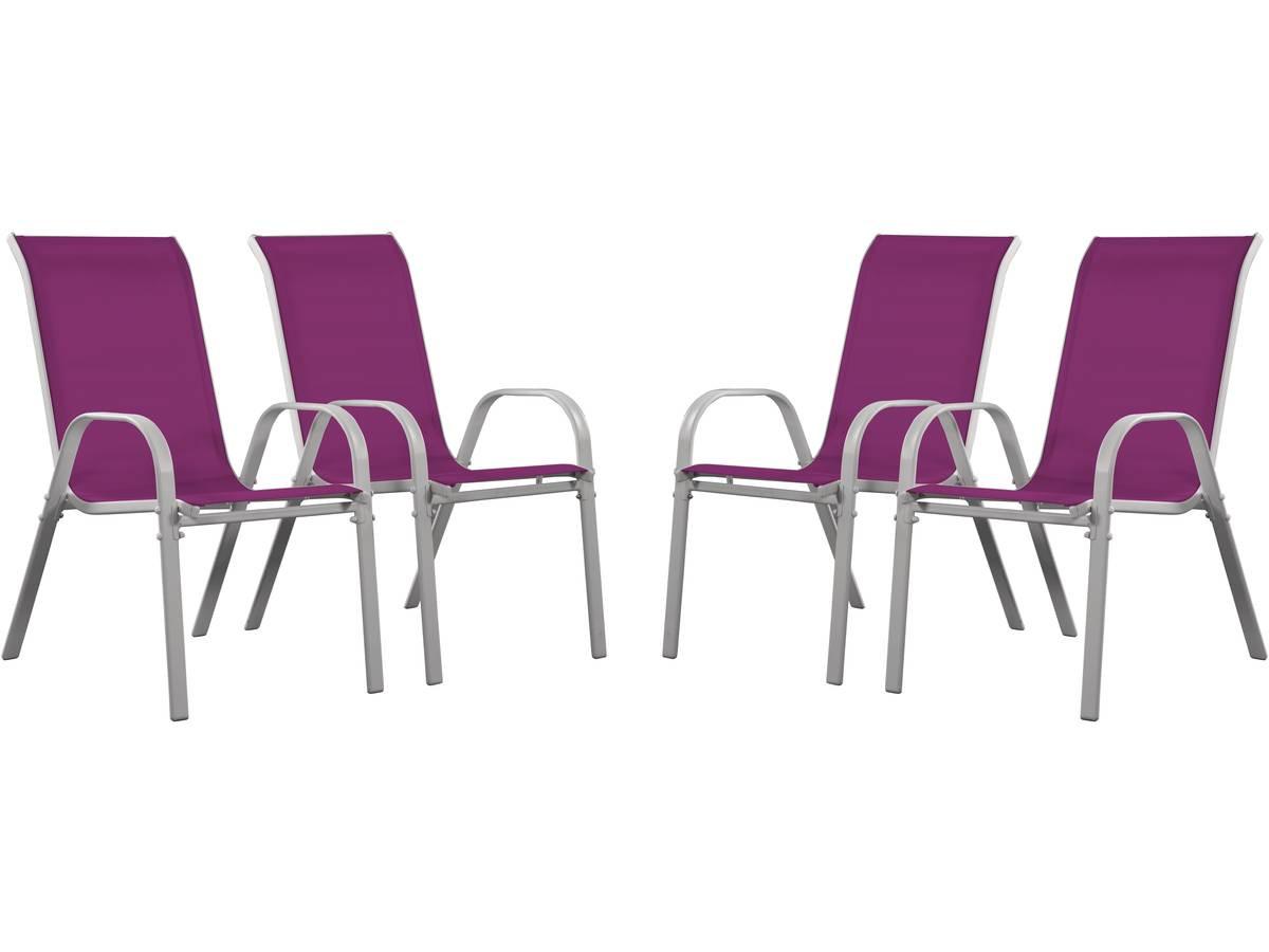 Lot de 4 fauteuils de jardin - Acier/Textilène - 53.5 x 75 x 92 cm - Design simple et moderne - Empilables - Hauteur d'assise : 40 cm - Entretien simple.Lot de 4 fauteuils de jardin Cordoba – Phoenix – Acier / Textilène – Rose – 53,5 x 75 x 92 cmLe lot de 4 fauteuils de jardin Cordoba – Phoenix
