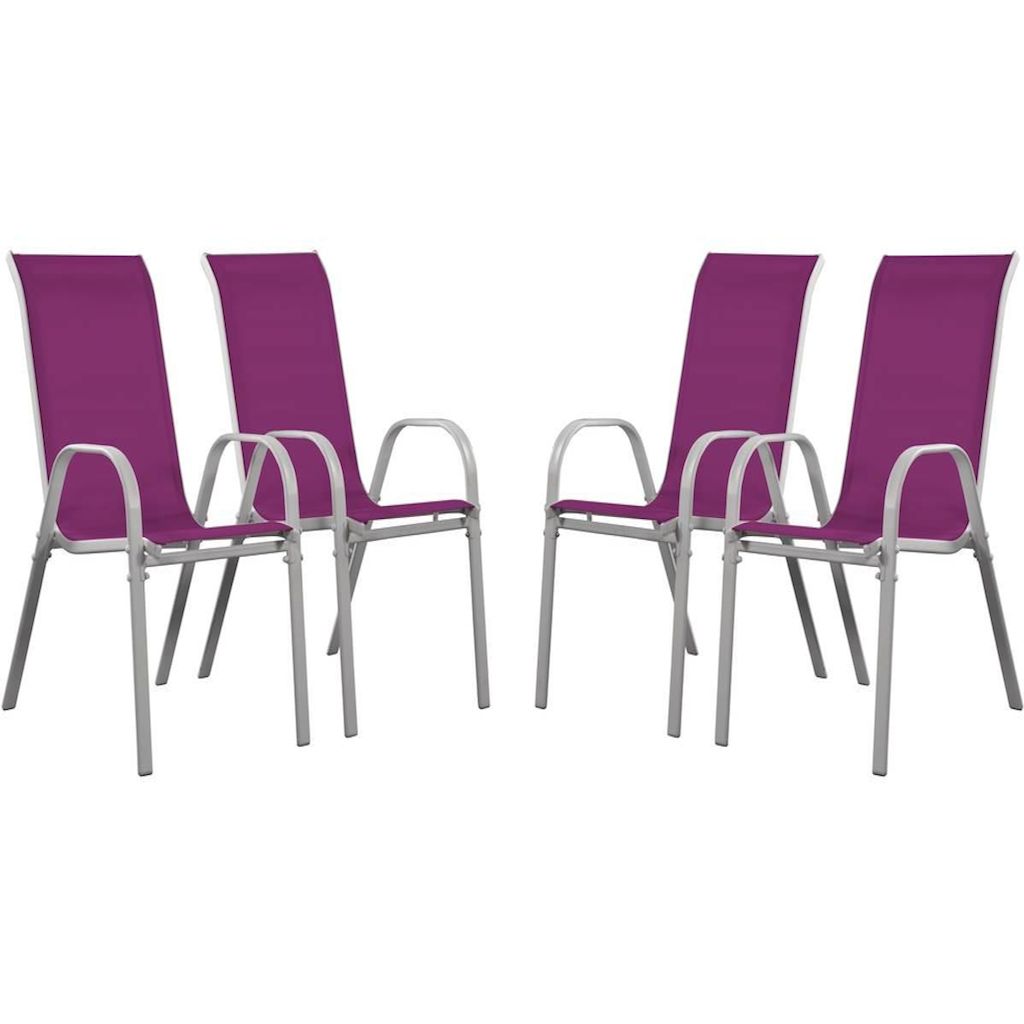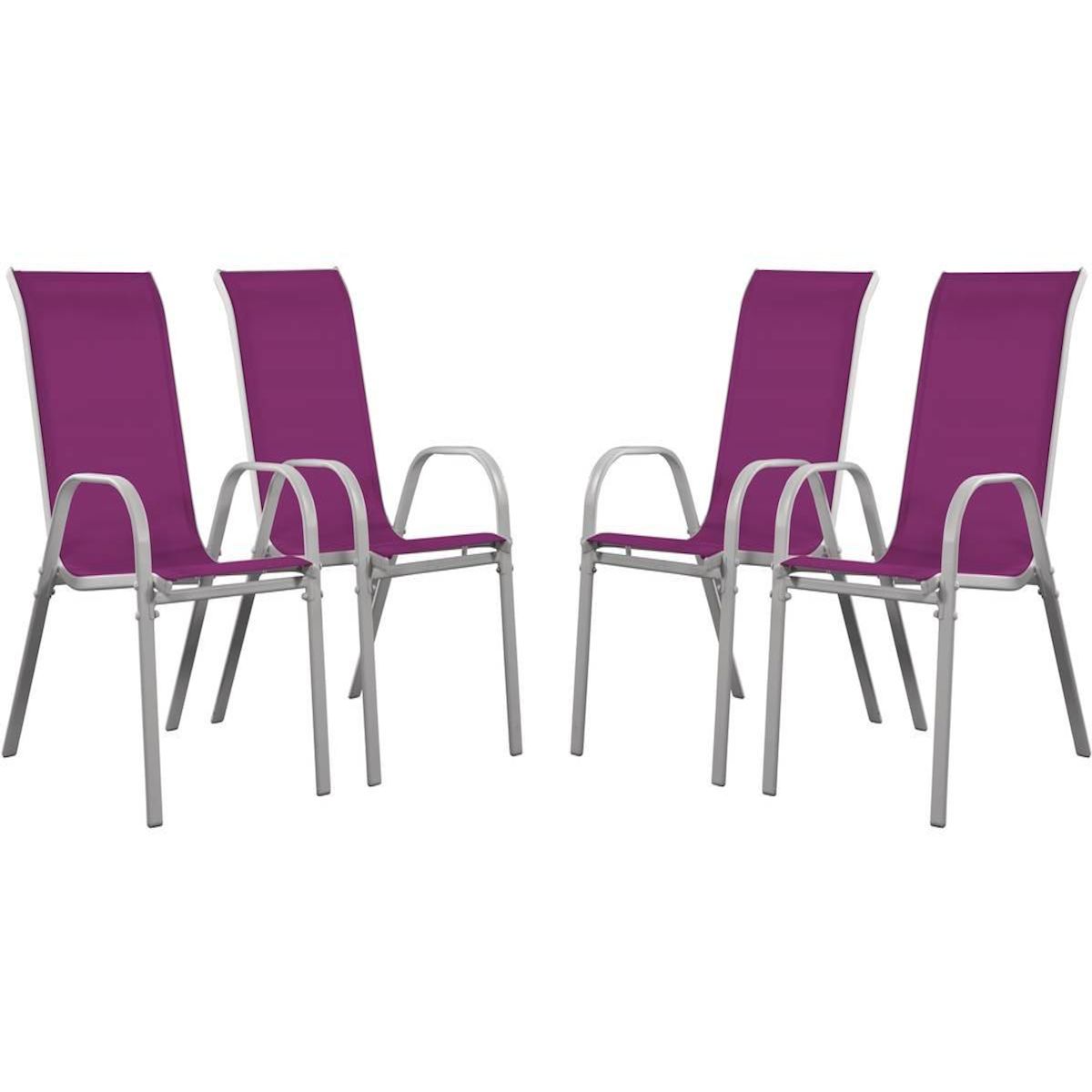 Lot de 4 fauteuils de jardin - Acier/Textilène - 53.5 x 75 x 92 cm - Design simple et moderne - Empilables - Hauteur d'assise : 40 cm - Entretien simple.