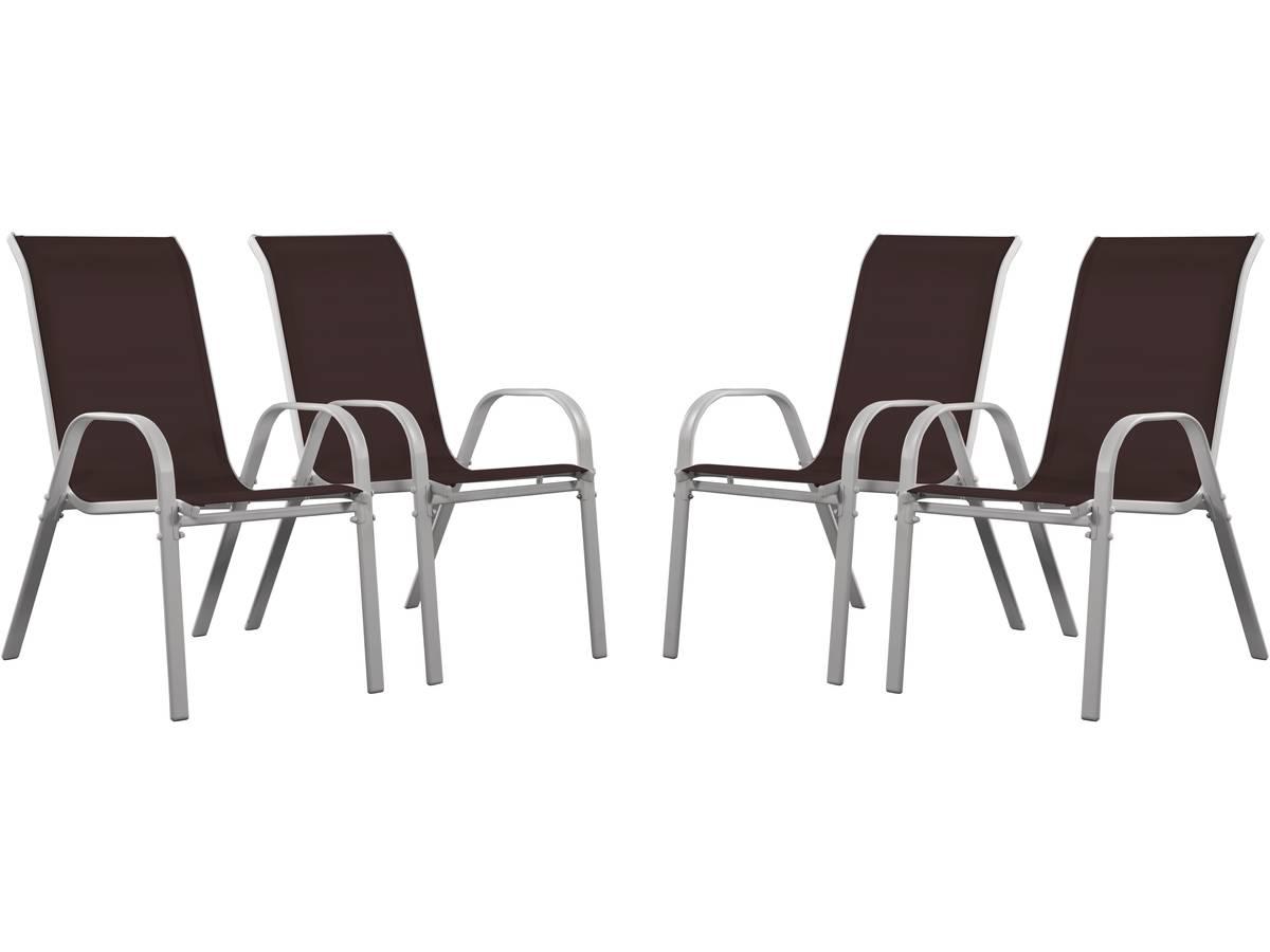 Lot de 4 fauteuils de jardin - Acier/Textilène - 53.5 x 75 x 92 cm - Design simple et moderne - Empilables - Hauteur d'assise : 40 cm - Entretien simple.Descriptif : Vous aimerez les fauteuils Cordoba pour leur robustesse et leur élégance joint à une touche de modernité. Disponibles en différents co