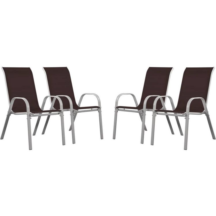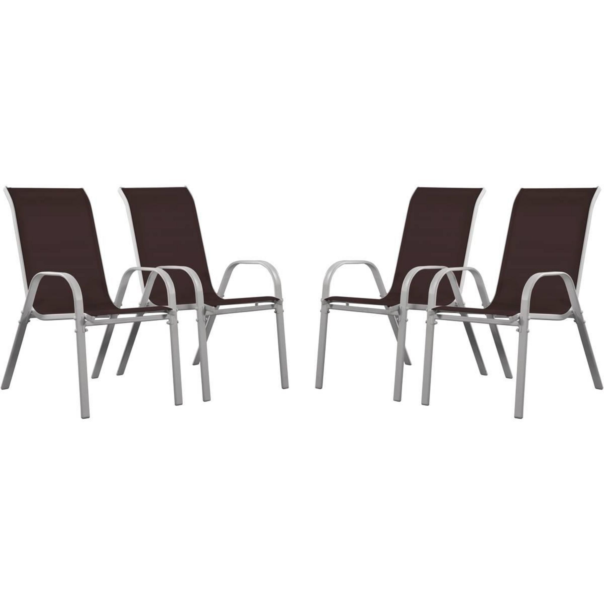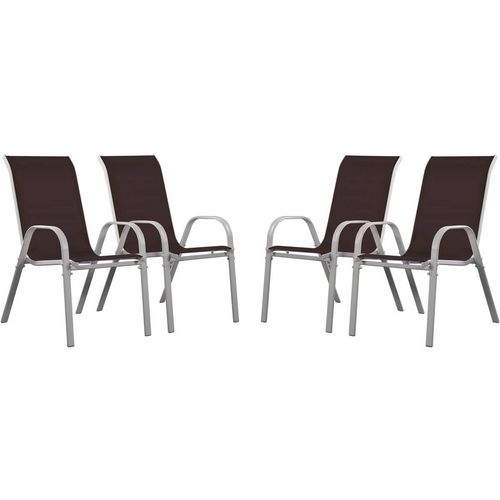 En savoir +Lot de 4 fauteuils de jardin - Acier/Textilène - 53.5 x 75 x 92 cm - Design simple et moderne - Empilables - Hauteur d'assise : 40 cm - Entretien simple.