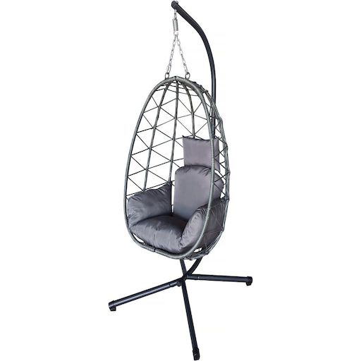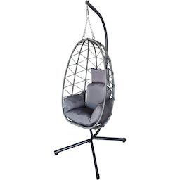 Oeuf suspendu jardin Cosi - Dimensions : 99 x 92 x 194 cm - Structure en métal et rotin - 180g polyester - Gris.