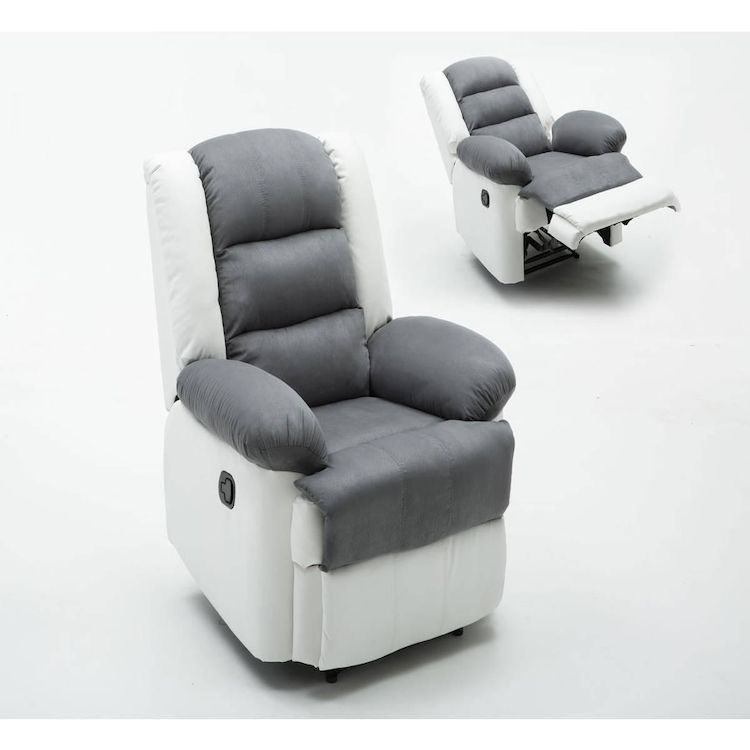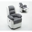 Fauteuil relax Buckingham - Blanc / Gris clair - Dimensions : 85 x 93 x 100 cm - En PU - Dossier inclinable - Repose-pied relevable - 3 positions d'inclinaison possibles - Mécanisme : manette sur le côté - Garnis de mousse et mousse recyclée - Hauteur d'assise : 50 cm.Fauteuil relax Buckingham Un