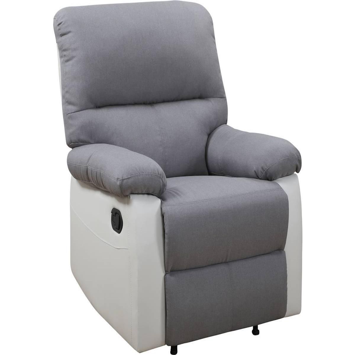 Fauteuil relax Lincoln - Inclinable - Blanc / Gris clair - Dimensions : 90 x 89 x 103 cm - Revêtement en tissu et PU - Rembourrage mousse.