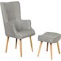 Fauteuil style scandinave tissu Odense Ce fauteuil de style scandinave est parfait pour illuminer votre intérieur et y apporter une touche d'élégance. Grâce à son revêtement en lin et son rembourrage en mousse, vous serez plongés dans un moment de pur douceur. Il est accompagné d'un repose-pied parfait pour vos moments de détente et de relaxation. Disponible en plusieurs coloris, vous allez obligatoirement trouver celui qui vous conviendra et qui s'accordera parfaitement à votre décoration.Pour votre confort rien de mieux que le fauteuil scandinave en lin Odense . Fauteuil style scandinave tissu Odense - 73 x 81 x 92,5 cm - Gris clair .Descriptif: - Revêtement en lin
