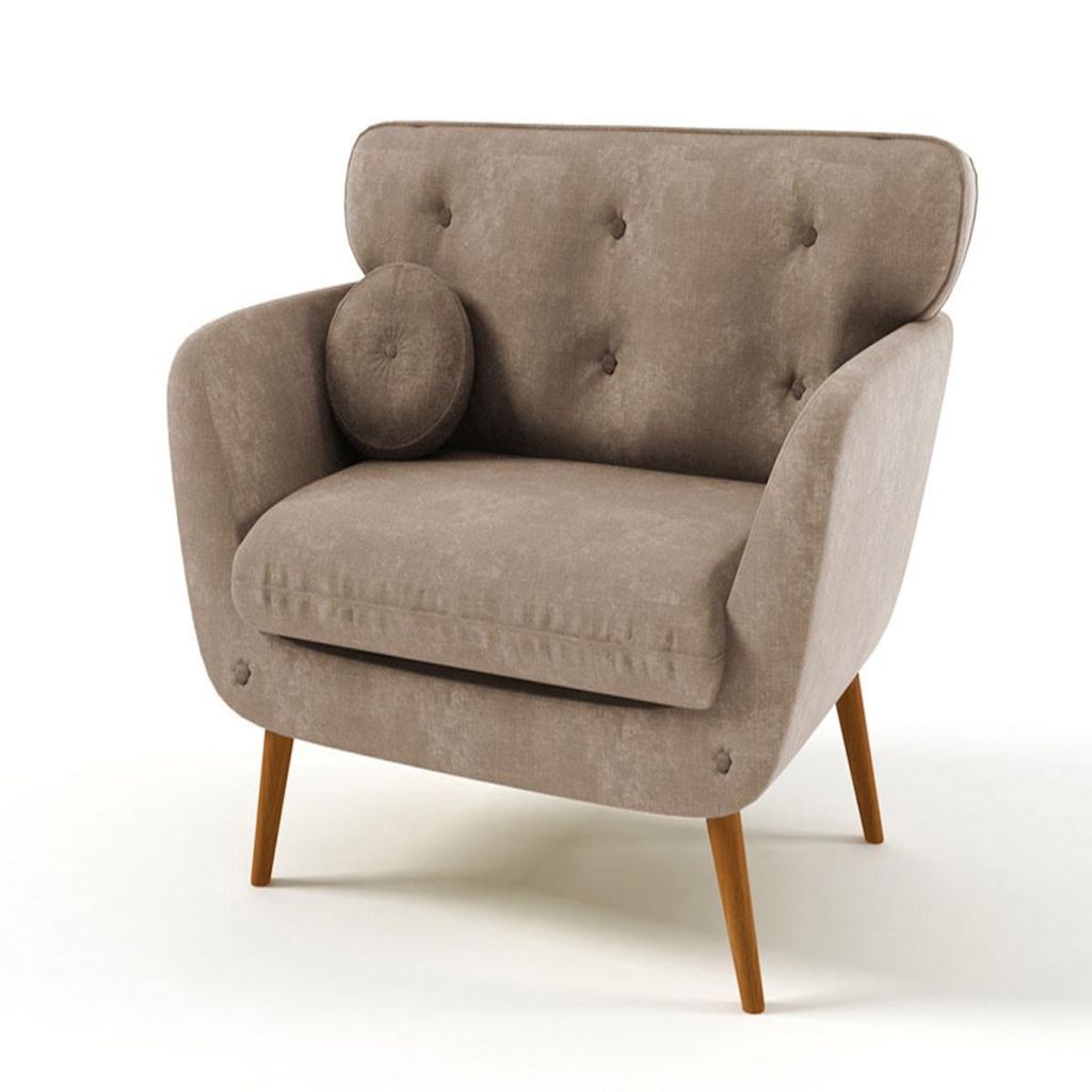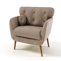Fauteuil Alva - 88 x 83 x 100 cm - Taupe - Assise densité : 30kg/m3 - Dossier densité : 21kg/m3 - Pieds en bois - Structure contreplaqué bois - Fabrication européenne .Sans Titre: tissu polyester