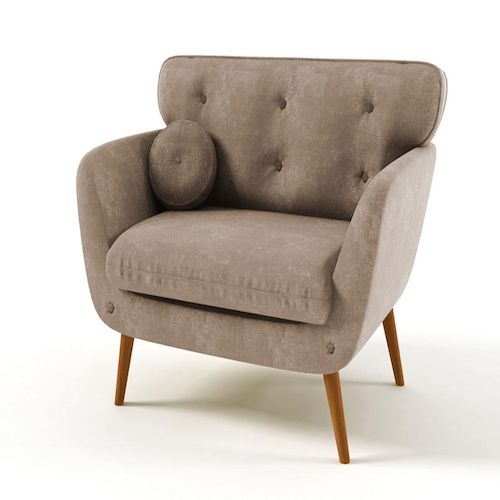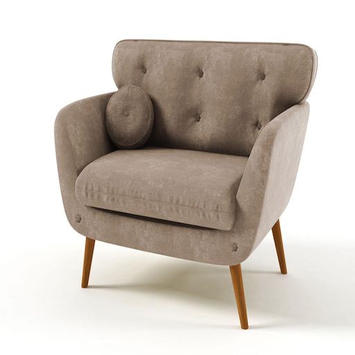 Fauteuil Alva - 88 x 83 x 100 cm - Taupe - Assise densité : 30kg/m3 - Dossier densité : 21kg/m3 - Pieds en bois - Structure contreplaqué bois - Fabrication européenne.