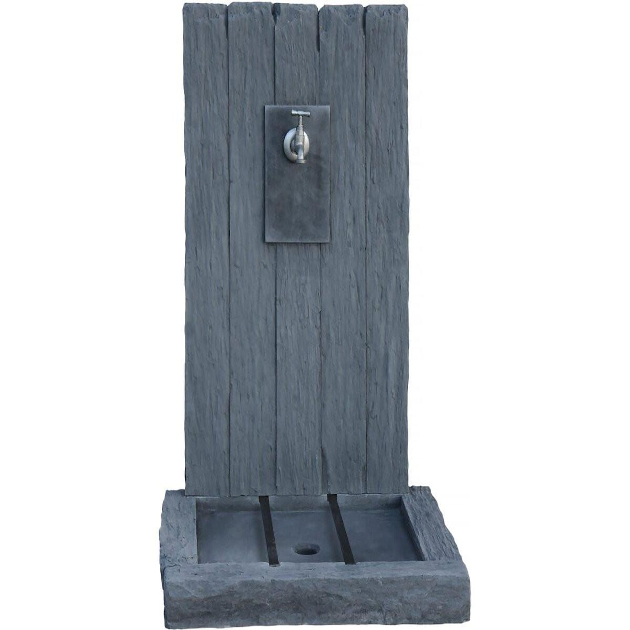 Fontaine ARDOISE - en pierre reconstituée imitant parfaitement l'ardoise. Vendue avec 1 robinet et 2 barres acier repose seau - 59 x 44 x 87 cm - Gris.Fontaine ARDOISE Le point d'eau est un élément central dans le jardin. Offrez-vous une fontaine très belle fontaine grise et élégante imitant p