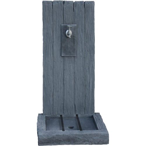 Fontaine ARDOISE - en pierre reconstituée imitant parfaitement l'ardoise. Vendue avec 1 robinet et 2 barres acier repose seau - 59 x 44 x 87 cm - Gris.