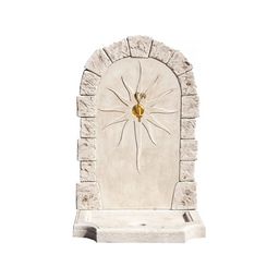 Description : Vendue avec un robinet en laiton.L'entraxe du trou du robinet se trouvant dans le fronton est à 57 cm du sol. Le réceptacle (plaque) fait 7 cm d'épaisseur. La hauteur du fronton fait 86 cm. .