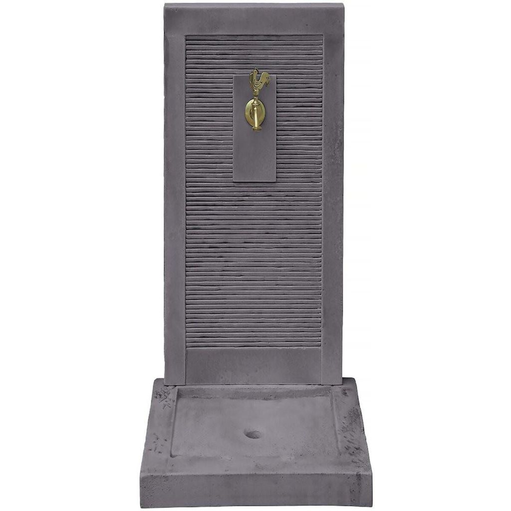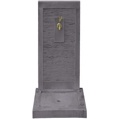 Fontaine ETNA Le point d'eau est un élément central dans le jardin. Offrez-vous une fontaine élégante imitant parfaitement l'aspect de la pierre naturelle et authentique qui habillera parfaitement votre espace extérieur .La Fontaine murale est très résistante aux intempéries grâce à sa composition en pierre reconstituée, ce matériau est très résistant aux conditions extérieures.Elle est composée d'un réceptacle avec trou d'évacuation et d'un fronton se trouvant à 57 cm du sol.La fontaine est vendue avec un robinet en laiton pour un usage extérieur. Fontaine ETNA - en pierre - 57 x 42 x 87 cm - Vendue avec un robinet en laiton . .Description: Fontaine ETNA - en pierre - 57 x 42 x 87 cm - Vendue avec un robinet en laiton .