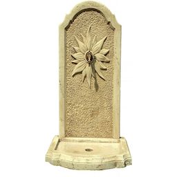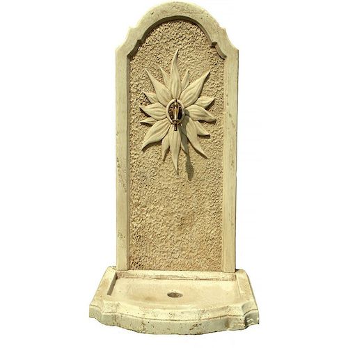 Fontaine Médicis Nous vous proposons la fontaine murale en pierre reconstituée Médicis. Idéal pour la décoration de votre jardin, ce matériau est très résistant aux conditions extérieures telles que la pluie, le gel ainsi qu'aux autres intempéries.Elle est composée d'un réceptacle avec trou d'évacuation et d'un fronton.Fontaine Médicis - 0.62x 0.42x 0.90 m - En pierre reconstituée imitant à la perfection l'aspect de la pierre naturelle. .Description: Vendue avec un robinet en laiton.