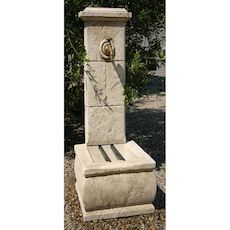 Fontaine Napoli Nous vous proposons cette magnifique fontaine de jardin Napoli en pierreIdéal pour la décoration de votre jardin, ce matériau est très résistant aux conditions extérieures telles que la pluie, le gel ainsi qu'aux autres intempéries.reconstituée composée d'un bac avec trou d'évacuation et d'un fronton. Fontaine Napoli - 0.50x 0.50x 1.08 m - En pierre reconstituée imitant à la perfection l'aspect de la pierre naturelle. .Description: Vendue avec 2 barres en acier plein et un robinet laiton.