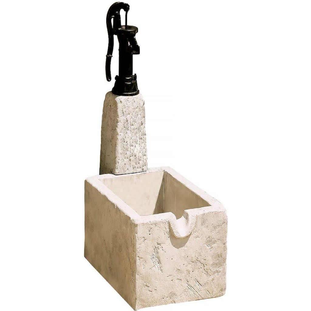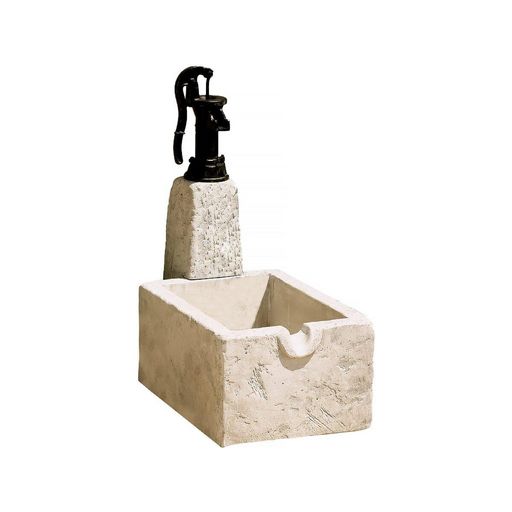 Fontaine RETRO - Pierre reconstituée composée d'un bac , d'un socle et d'une pompe en fonte manuelle pouvant se raccorder à un puits ou un forage - 43 x 73 x 95 cm.