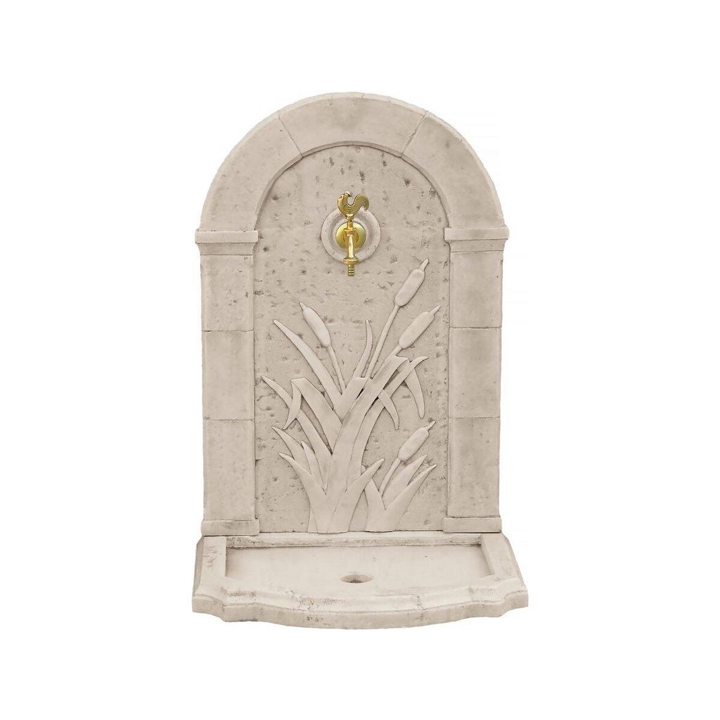 Fontaine ROSEAU - en pierre reconstituée composée d'un réceptacle et d'un fronton. Vendue avec un robinet en laiton - 62 x 42 x 93 cm.