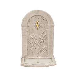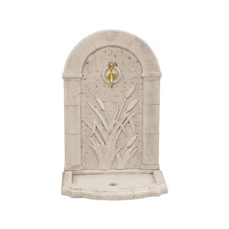 Description : Fontaine ROSEAU - en pierre reconstituée composée d'un réceptacle et d'un fronton - Vendue avec un robinet en laiton - 62 x 42 x 93 cm.