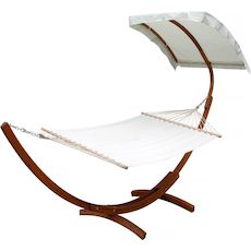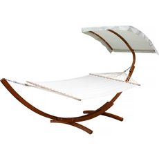 Hamac Dallas XL - Avec auvent - 401 x 119 x 217 cm - Structure en bois , Toile e coton - Ecru.