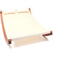 Hamac bois en texline Relax - 2 places - Dimensions : 200 x 150 x 140 cm - Ecru - Structure : bois de Mélèze - Toile : texline - Coussin inclus - Très résistant.