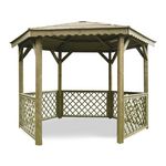 Kiosque en bois Pavilion - 6.68 m² - Dimensions extérieures au sol : 315 x 257 x 256 cm - 16 mm - Toiture en bois perméable.