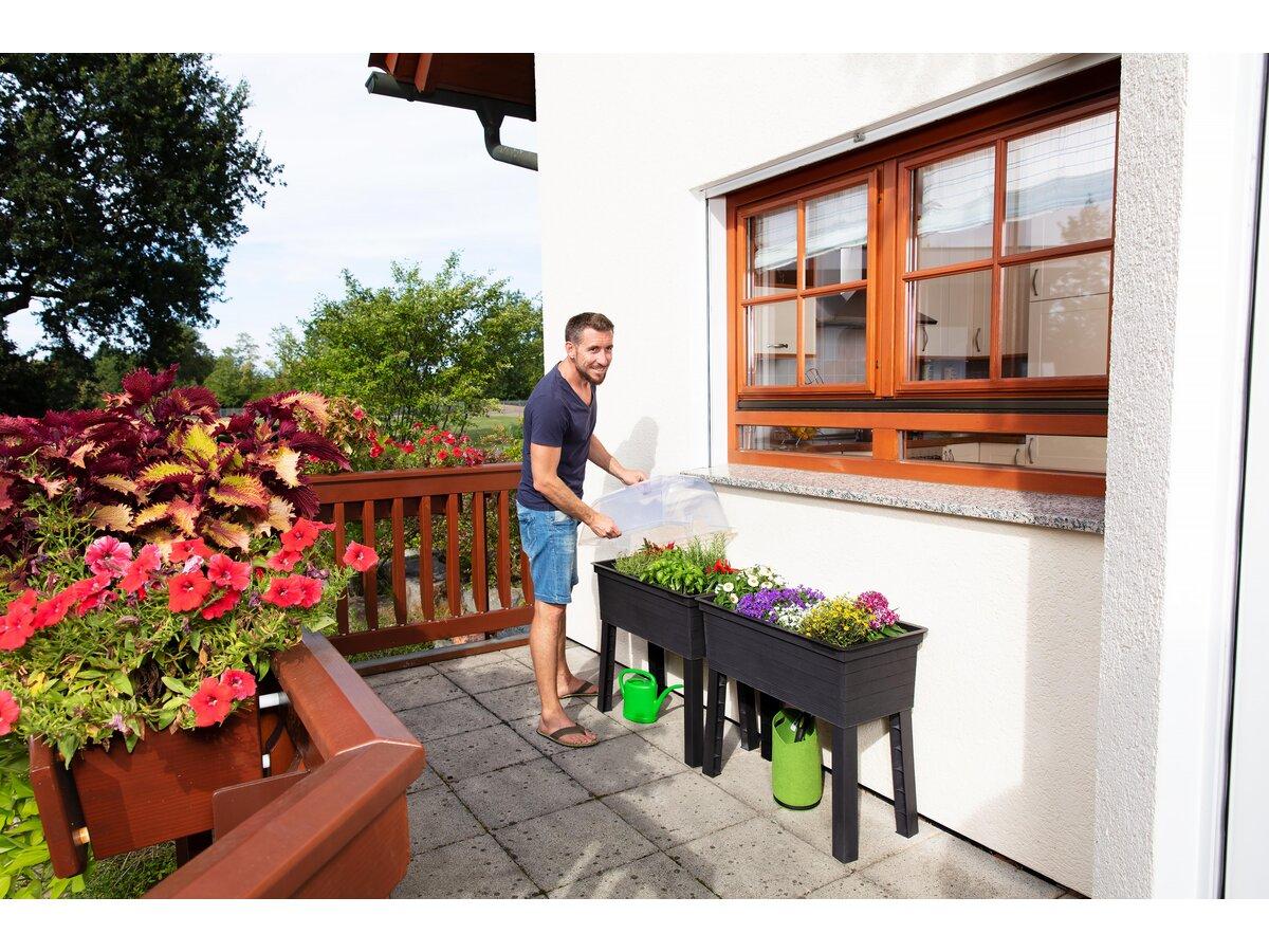 Kit de 3 carrés potagers Urban sur pieds avec serre - Matière : plastique 100% recyclé - 75 x 37 x 65 cm.
