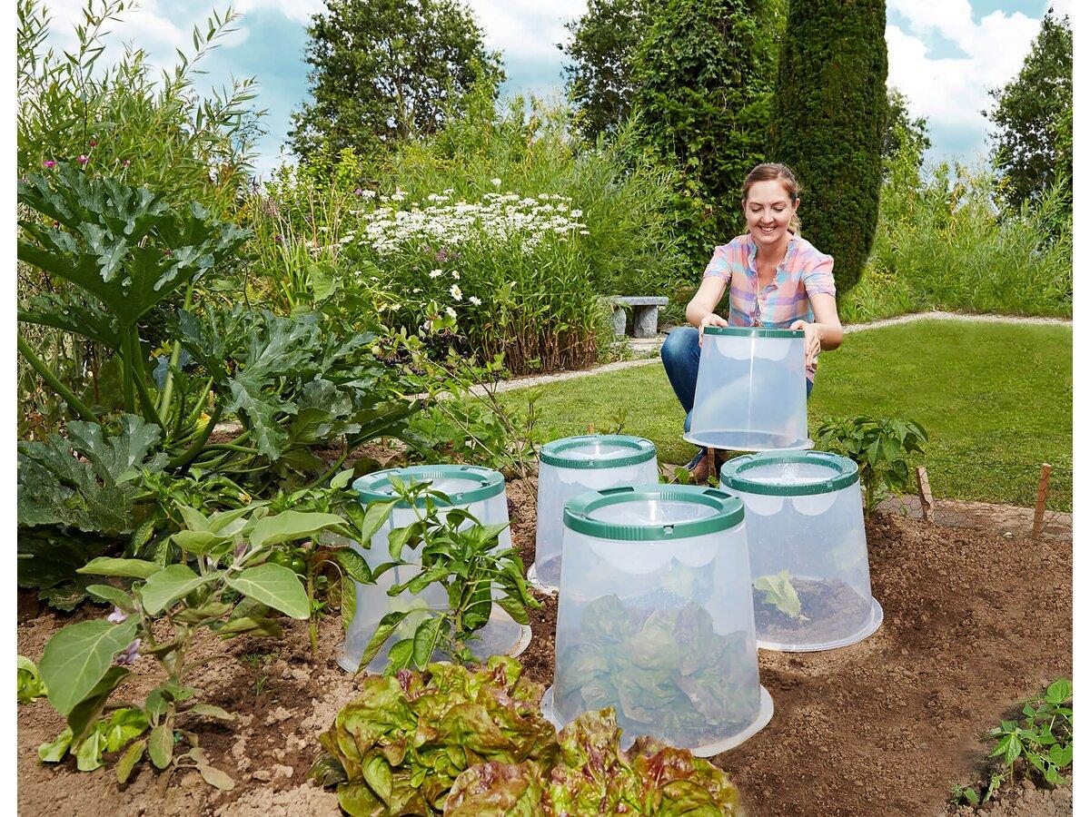 : Ce Kit prêt à l'emploi est composé de 3 cloches de culture Sunny et d'un set de 10 piquets. Ce kit de 3 cloches de culture vous permettra d'accélerer la croissance de vos plantes, tout en les protégeant des nuisibles et du gel. Traitée anti-U.V, la cloche Sunny récupère et régule l'écoulement de l'eau de pluie pour un arrosage parfait. Par ailleurs, elle possède un système de ventilation intégré. Le montage des cloches est simple et ne nécessite pas d'outils.