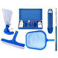 Kit Matériel d'entretien complet - Brosse murale ABS 25 cm - Epuisette de surface avec filet polyester - Trousse d'analyse pH et Chlore avec réactifs et éprouvettes - Thermomètre 16 cm - Balai venturi avec tête ½ lune - Manche télescopique.Indispensable, ce kit d'entretien est parfait pour vous aide