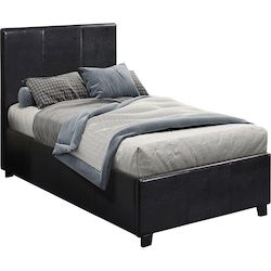 Lit PVC Carla noir - 1 personne - Dimensions lit : 203 x 97 x 86 cm- Dimensions matelas : 90 x 190 cm - Structure en contre plaqué - Pieds en bois - Recouvert de PVC - Sommier à lattes et tête de lit inclus - Coffre de rangement en toile inclus.Lit Carla Offrez-vous un moment de détente avec ce l