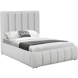 Lit double design bouclette avec coffre Annie - 140 x 190 cm - Coloris Blanc - Sommier à lattes inclus - 24 lattes - Dimensions: 211 x 158 x 121 cm.