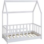 Lit cabane avec barrière pour enfant Charlotte - Bois - Blanc - 80 x 160 cm.