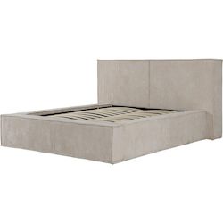 Lit double en velours côtelé avec coffre Couchevel - Dimensions: 254 x 223 x 90 cm - Coloris Beige - Sommier à lattes inclus - 24 lattes.