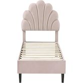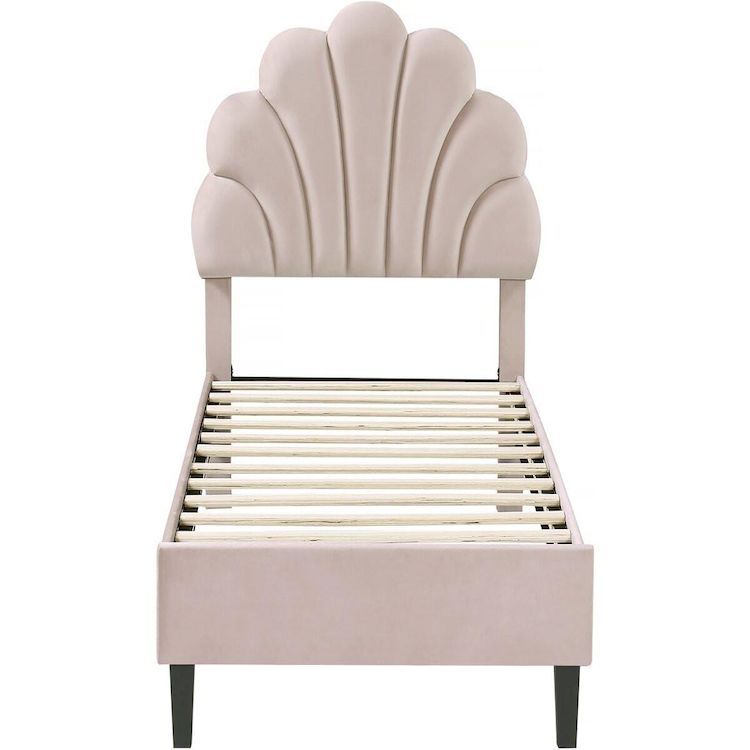 Lit simple Manon - Dimensions : 196 x 97 x 116 cm - Dimensions du sommier : 90 x 190 cm - Dimensions de la tête de lit : 97 x 65 x 33 cm - Epaisseur de la tête de lit : 60 mm - Tête de lit en forme de coquillage - Velours - Beige.Lit coquillage en velours Manon - 90 x 190 cm - BeigeApportez un