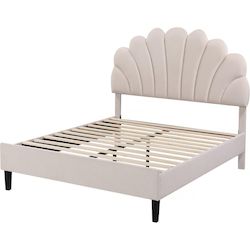 Lit double Manon avec tête de lit en forme de coquillage - Beige - 160 x 200 cm - Velours.