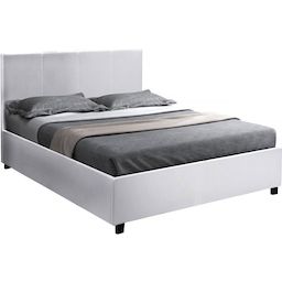 Lit coffre double Carla - Blanc - Coffre de rangement en toile - Dimensions lit : 203 x 147 x 86 cm - Dimensions matelas : 140 x 190 cm - Sommier inclus.Lit Carla Offrez-vous un moment de détente avec ce lit double ! Idéal pour tous les univers de décoration, il ira à ravir avec votre chambre. Aj